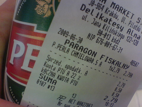W tych dniach egzaminacyjnych radziłem sobie ze "stresem" w najlepszy znany mi sposób - pijąc piwo. Wybrałem się nawet na poszukiwania praktycznie nieznanej poza województwem lubelskim, a wyśmienitej "Perły"; znalazłem ją dopiero w najbardziej wypasionych mega-delikatesach "Alma", oto dowód: